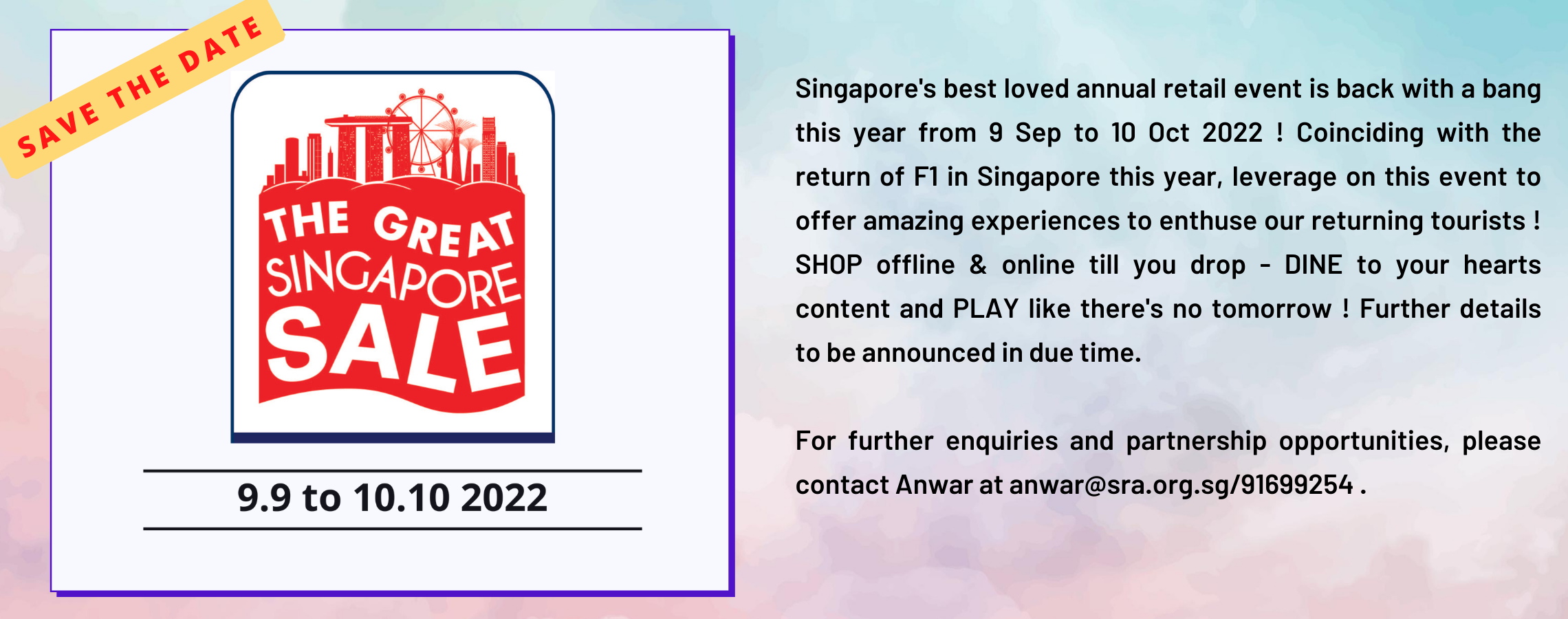 On behalf of SRA and our partners, we would like to thank ALL participating members for making this year’s Great Singapore Sale a resounding success! We hope that you have benefitted from the event and we look forward to your continued support on our future campaigns on GoSpree. Stay tuned for more campaigns and we look foreward to your continued participation!